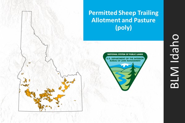 Description: This polygon feature class contains Bureau of Land Management (BLM) Idaho allotments and pastures that are categorized as having an authorization for trailing of goats or sheep in the BLM Rangeland Administration System (RAS) database. At the time of this RAS download (2010) there was no entry in RAS for the selection of Goat, only for sheep. A pasture is a sub-unit of a grazing allotment, each allotment is comprised of at least one pasture. In some cases, this layer identifies the BLM managed public land or other land associated with specific grazing allotments administered by the local BLM field office. Boundaries may be fences, arbitrary lines, or natural barriers. Agency management of polygons within this feature class is not specific to BLM; other agencies are also included. For more information contact us at