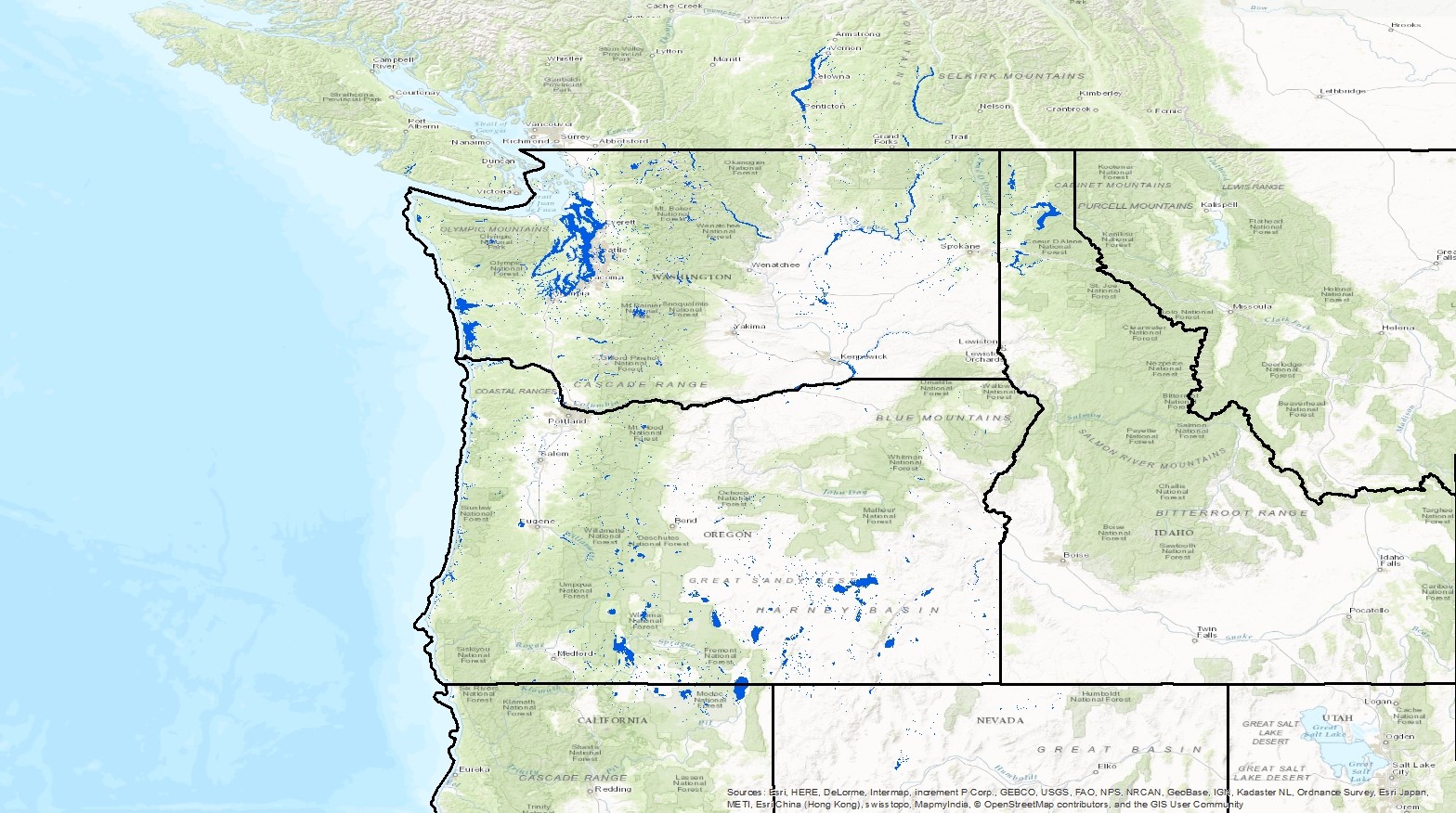 Copyright Text: USGS National Hydrography Dataset (NHD): BLM hydrography event data; Bureau of Land Management (BLM), Oregon State Office